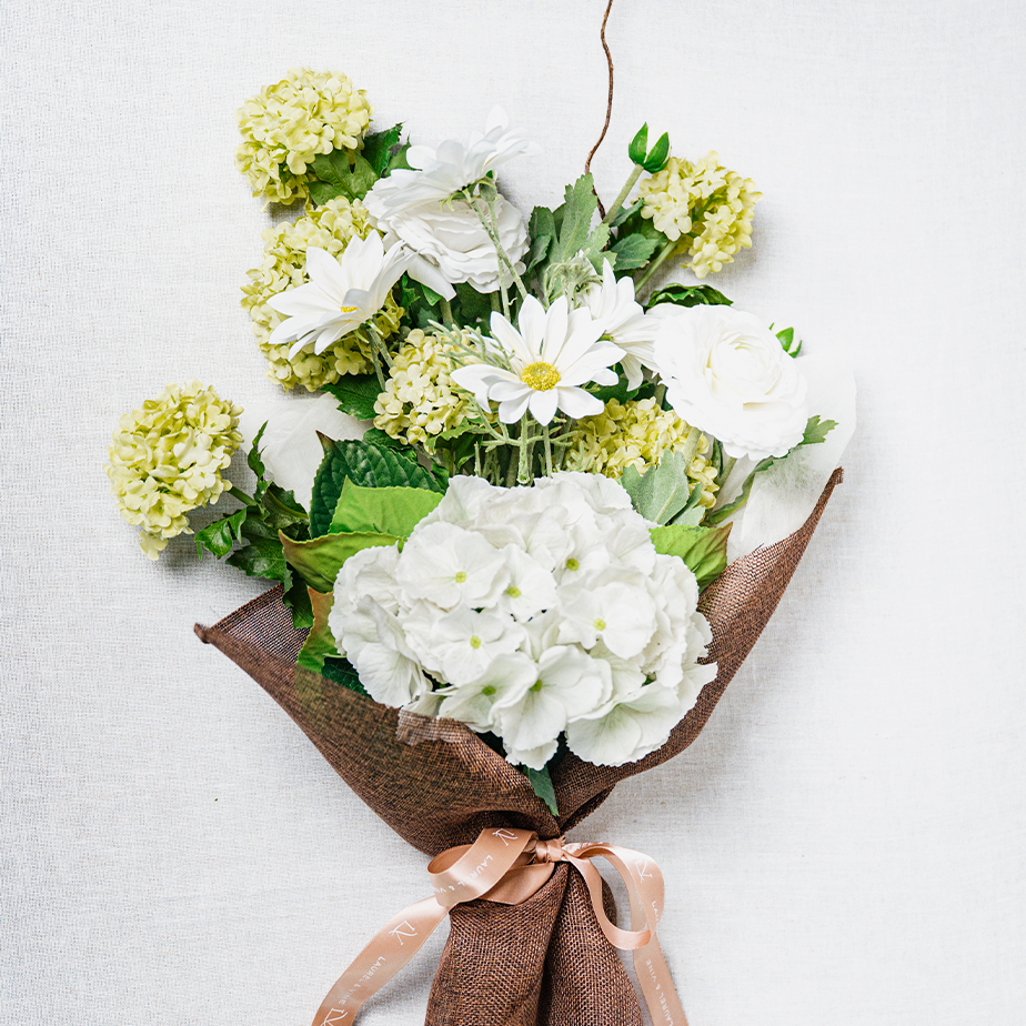 A celebration of garden beauty, Botanical Muse feels alive with movement and charm. Creamy hydrangea and delicate white blooms mingle with soft greens and playful twigs, creating a bouquet that’s fresh, feminine, and full of effortless grace, the essence of a modern garden muse.