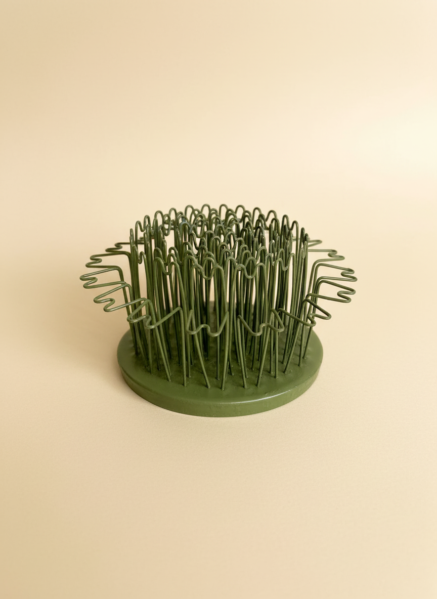 The 3.5" Hairpin Flower Frog is designed to anchor stems with stability and precision while maintaining a natural, airy composition. The upright hairpin-style prongs allow for flexible placement, making it easy to create fuller, sculptural arrangements with balanced dimension.