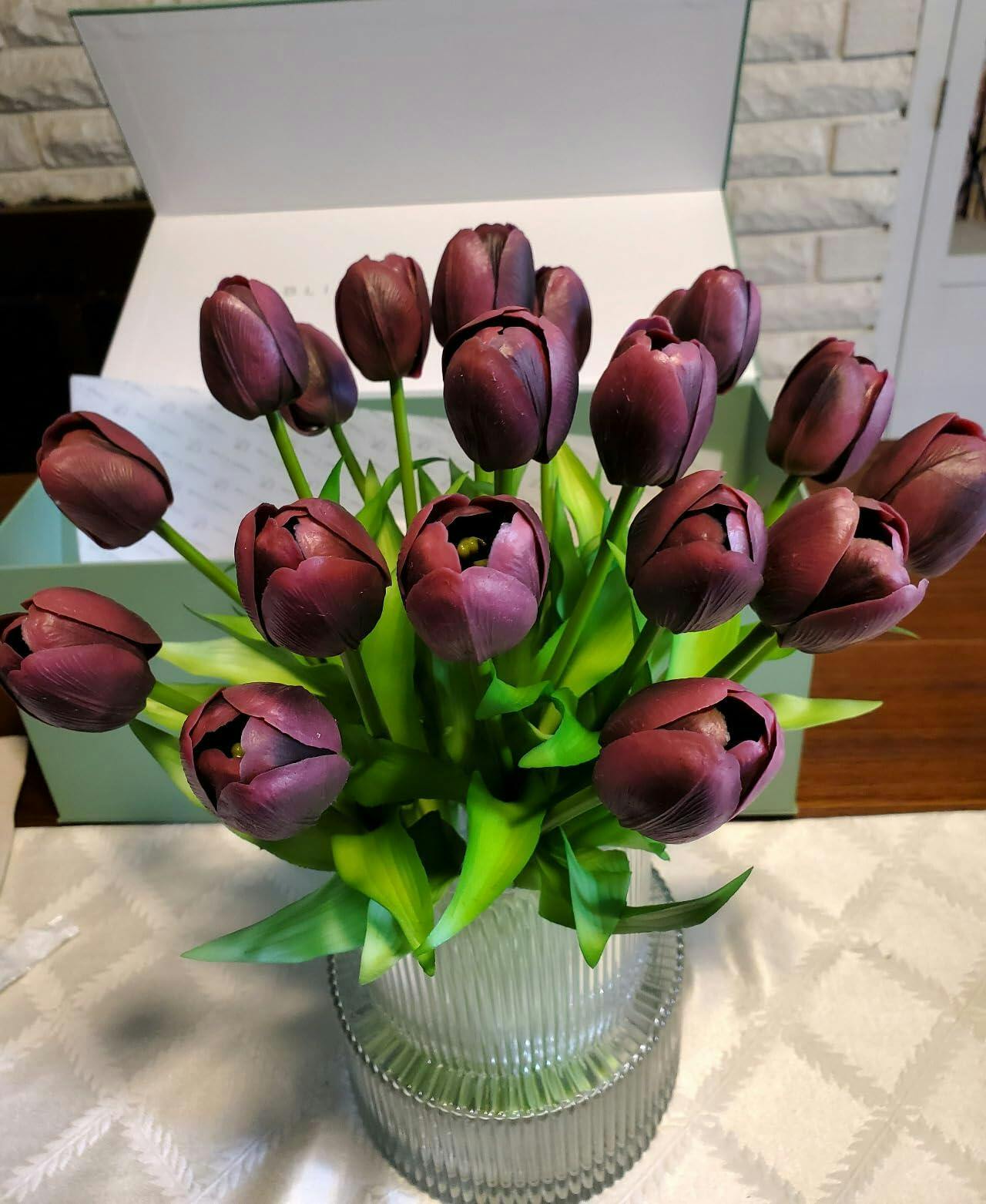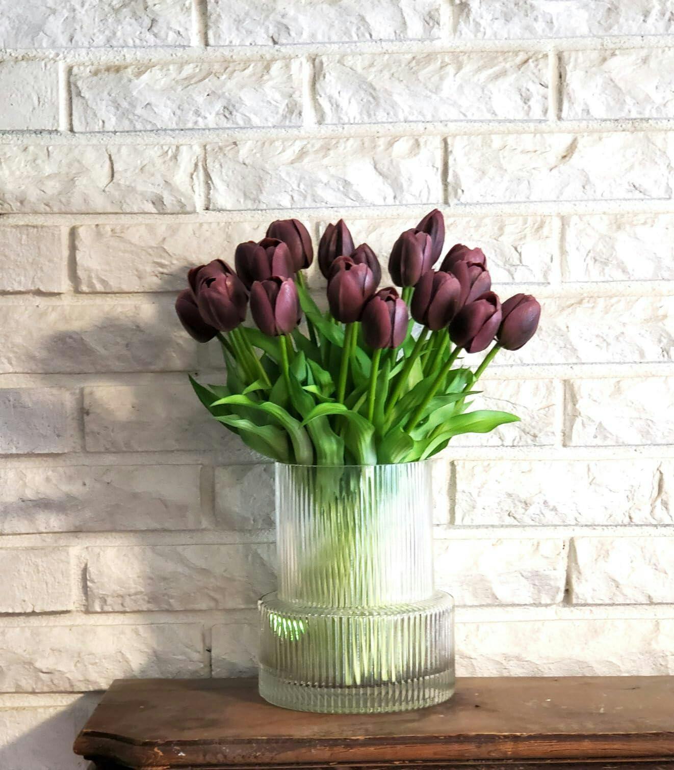 This set is not only visually stunning but also durable and low-maintenance. The tulips can be bent and shaped to create a full and beautiful arrangement. The vase is made from quality glass, ensuring stability and a luxurious feel.
